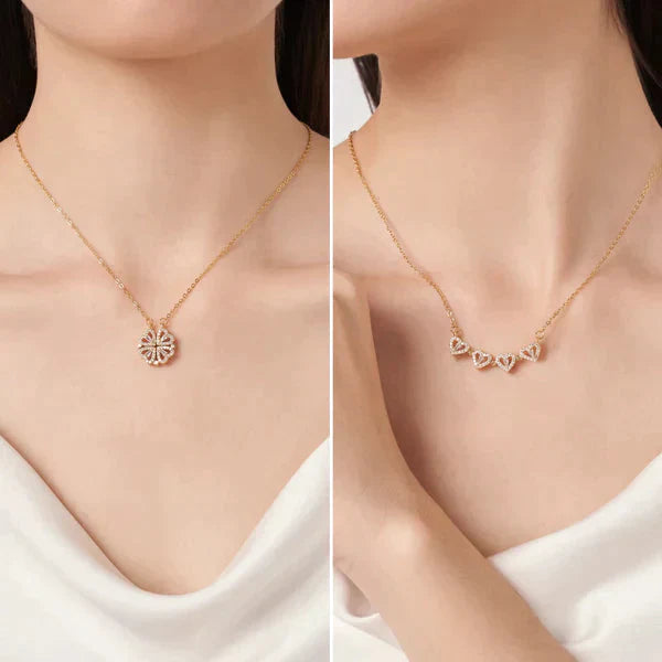 Mais que uma simples jóia, esse colar pode ser usado de 2 formas diferentes, um modo simboliza o amor e o outro simboliza a prosperidade e sorte, tudo isso em uma única peça.